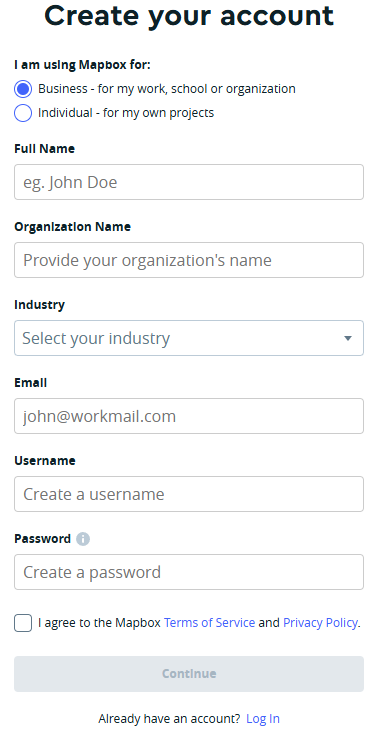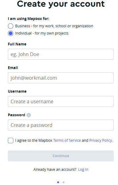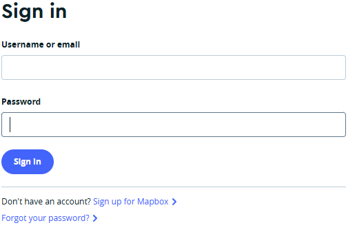 1. Clique em “Sign up for MapBox” para iniciar o registro: