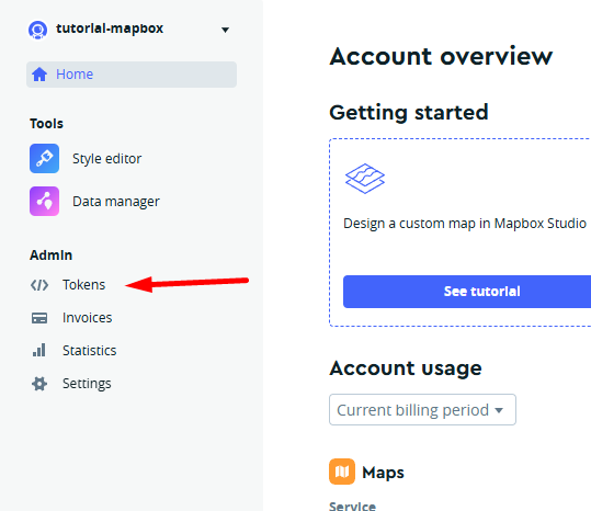 3. Você deve acessar a parte de "Tokens" para gerar sua API KEY: