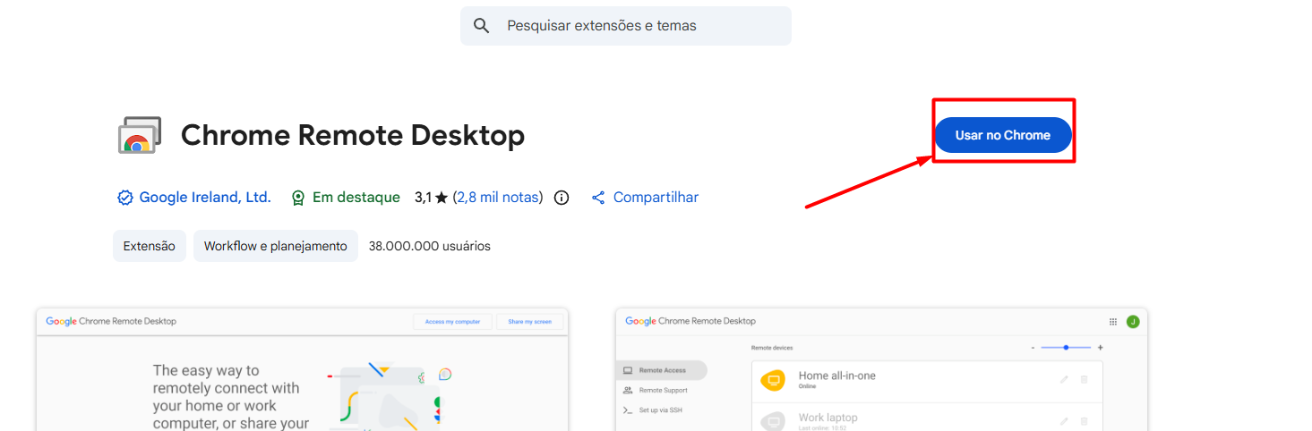 Após acessar, irá abrir a pagina da extensão e você clicará em "usar no Chrome".